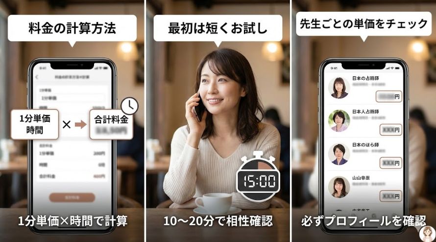 電話占いで怖いのは、「鑑定料以外にも、あとから何か取られるのでは?」という不安です。ここを先に潰します。