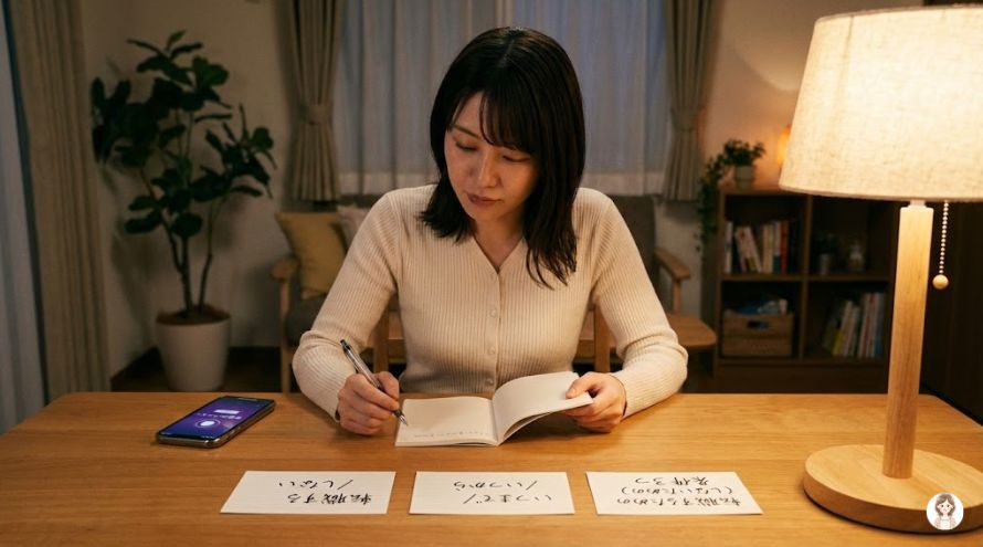 今日決めた行動を1つやってからでOKです。行動前に何度も確認すると不安が増えやすいので、まず1歩が先です。